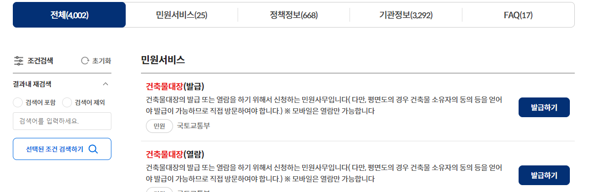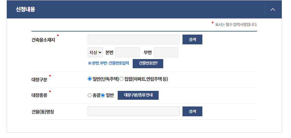 - 건축물대장을 검색합니다.
