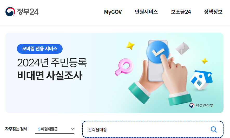 - 정부24 사이트에 접속합니다.