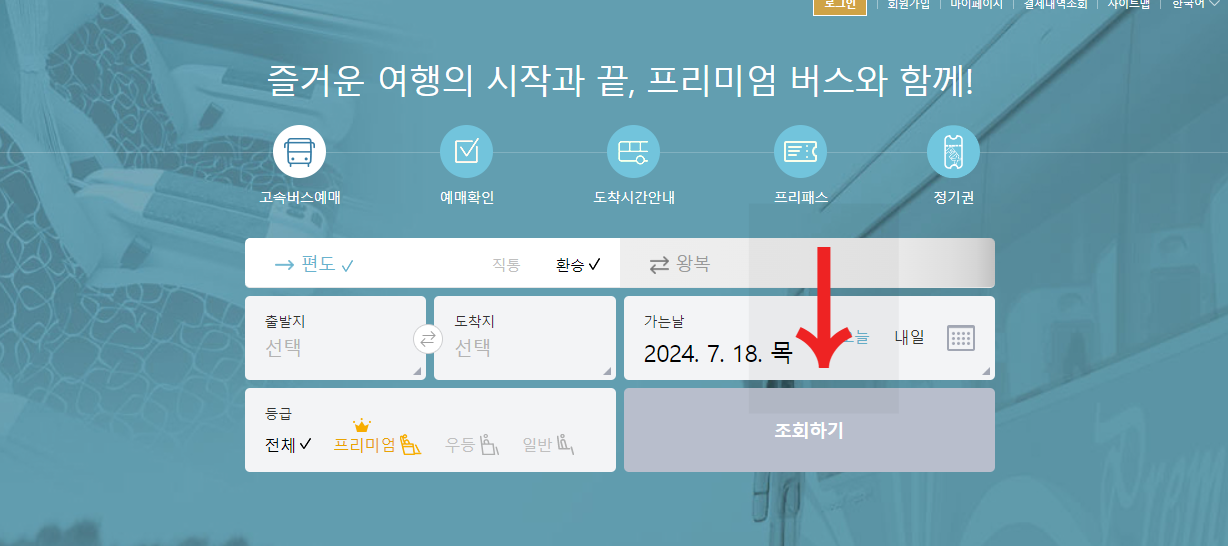 - 예매하는 것과 동일하게 출발지 도착지, 가는 날 등을 선택 후 조회합니다.