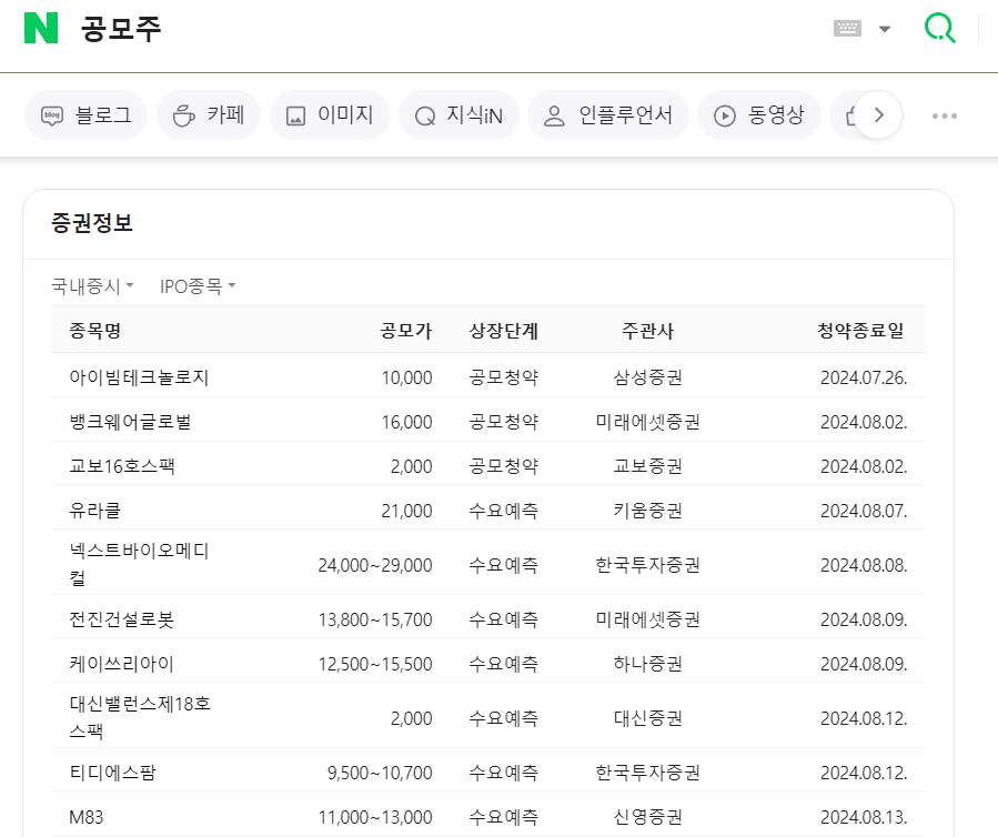 - 네이버에 공모주 검색(이 방법이 가장 편리하고 빠르긴 합니다)