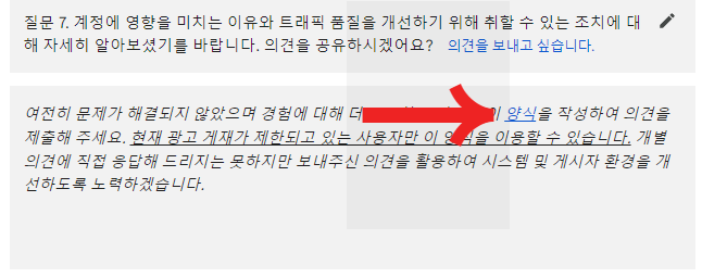 - 광고 게재 제한에 관한 의견 양식 폼이 나오는데 애드센스 게시자 ID, 어떤 제품에 문제 있냐는 젤문에 Google 애드센스 클릭(많이 아래에 있습니다) 등등 질문에 답한 뒤 제출을 하면 며칠 후에 답이 옵니다.