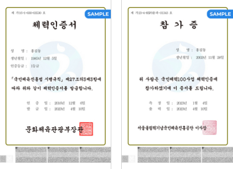 - 14세 이하는 '국민체력100 홈페이지'에서 문화상품권으로 신청 가능합니다.