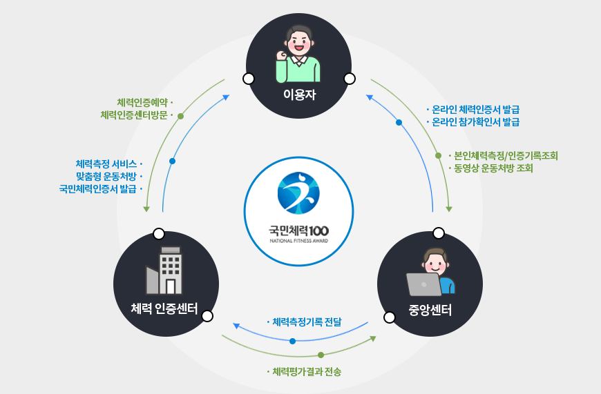 국민의 체력 및 건강 증진에 목적을 두고 체력상태를 과학적 방법에 의해 측정/평가를 하여 운동 상담 및 처방을 해주는 대국민 스포츠 복지 서비스입니다. 참가한 모든 국민들에게 체력 수준 맞춤형 운동 프로그램을 제공하고 운동에 꾸준히 참가할 수 있도록 체계적으로 관리하며, 체력 수준에 따라 국가 공인 인증서를 발급하기도 합니다. 하지만 아직 많은 분들이 모르고 있는 서비스이지만 빠르게 도움 받으시길 권장드립니다.
