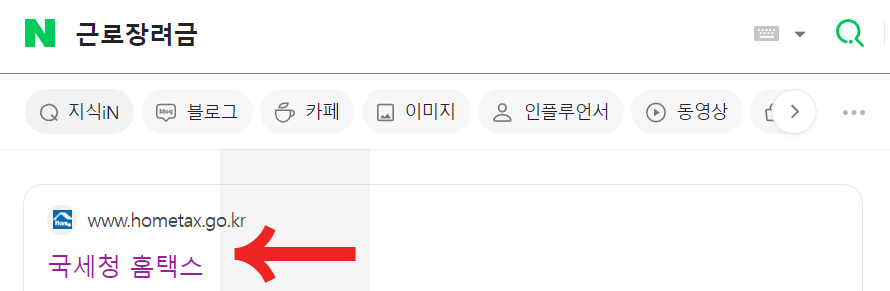 - 검색창에 근로장려금을 신청하고 옆에 돋보기를 눌러줍니다.
