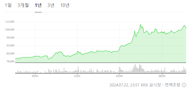 - 1년 최고점 : 111,140원