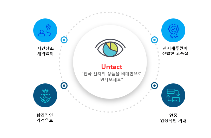 - 사업목적 : 농협 공판장 전자거래 플랫폼은 농가수취가격 제고와 물류효율성 제고를 통한 산지 농산물 제값 받기와 소비자 농산물 구매가격 안전을 목적으로 합니다. 출하처의 최저희망가격 제시 기능 구현과 저율의 상장수수료를 적용으로 기존 도매시장 대비 낮은 가격으로 거래될 수 있도록 하였습니다.