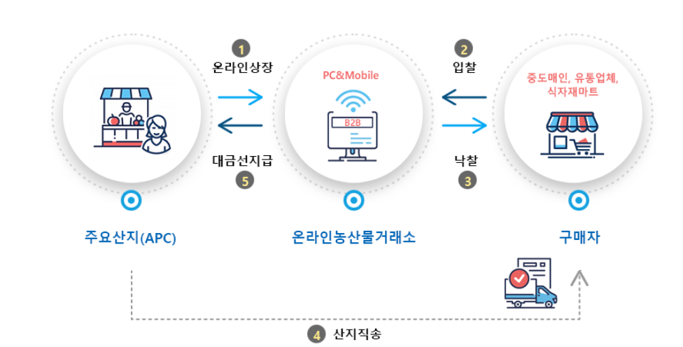 - 구매자 : 농협 공판장 역정을 맺고 농협 공판장 전자거래 플랫폼을 통해 거래하는 중도매인/매참인