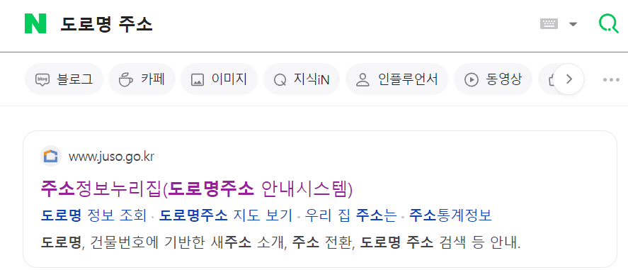 - 인터넷 검색 사이트를 열고 "도로명 주소" 또는 "새주소"를 입력합니다.