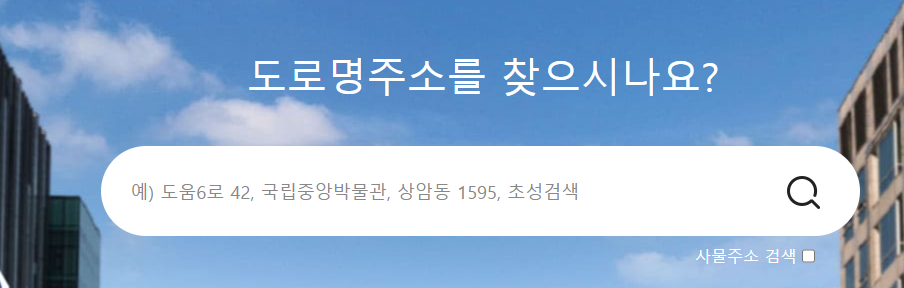 도로명 주소 검색하는 방법은 다음과 같습니다.