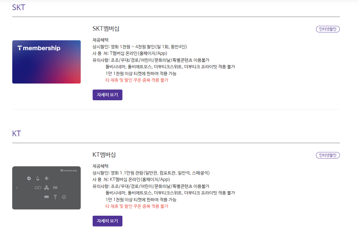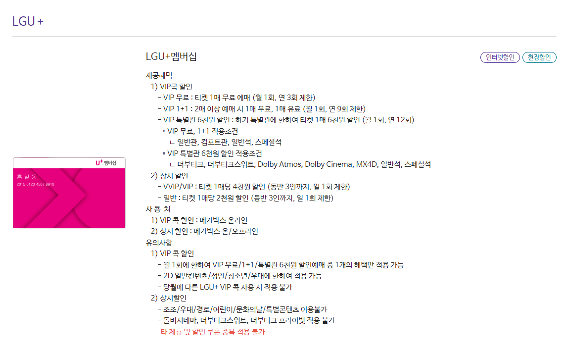 | 영화 | 사용 가능 요일 | 월 ~ 일 (요일 무관) |
