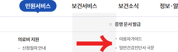 - 정부 24에 접속하여 발급 민원서비스 > 민원 신청안내 > 건강진단결과서(보건증) 검색 > 발급하기 클릭