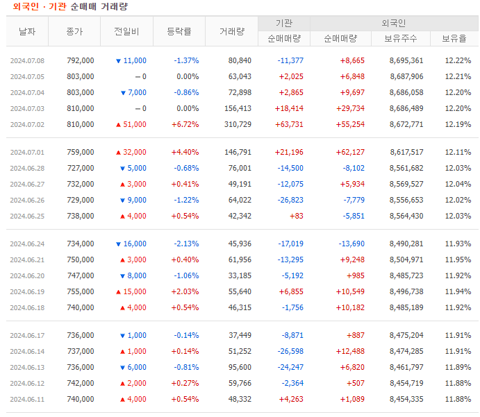 7월 8일까지 최근 한달 꾸준히 외국인들이 매집하고 있는걸로 보입니다.