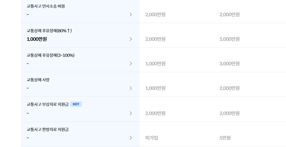 - 교통상해 후유장해(80% ↑) : 1000만 원