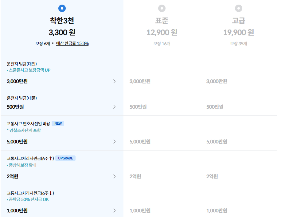 착한3천 3300원 운전자보험 보장내용
