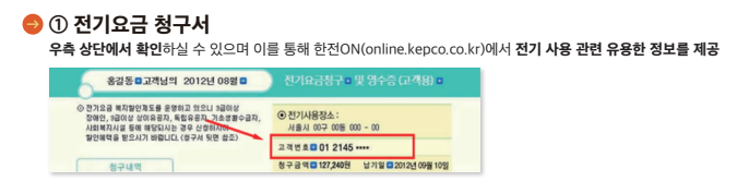 - 고객번호를 모르는 경우 한전 홈페이지(online.kepco.co.kr) 또는