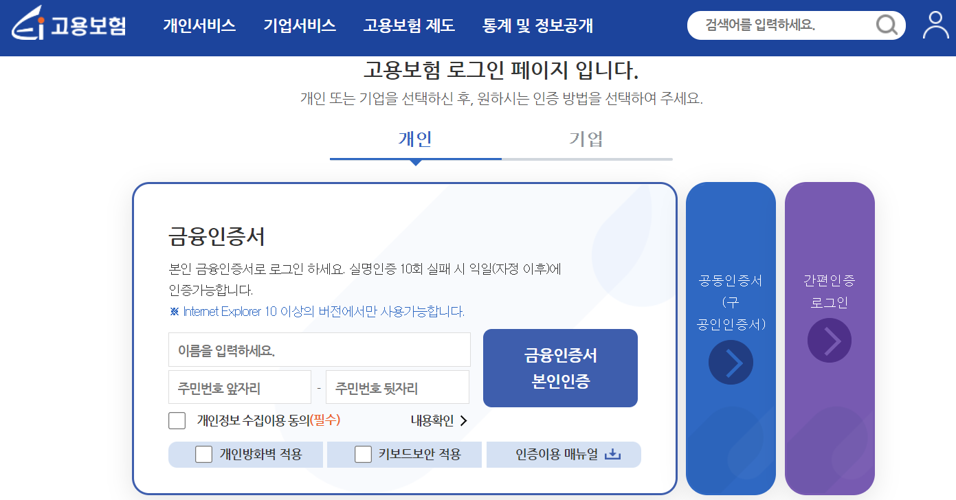 - 실업인정 인터넷 신청