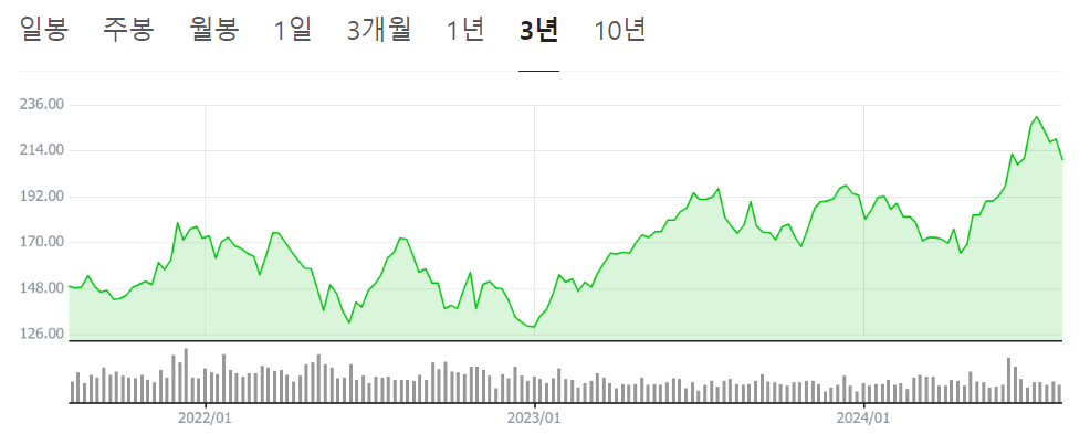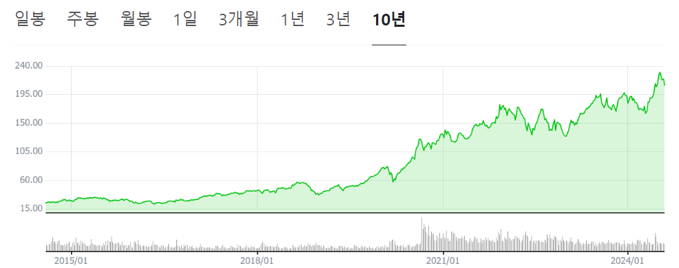 - 2024/08/08 기준 : 209.82달러 대략 한화 28만9천원