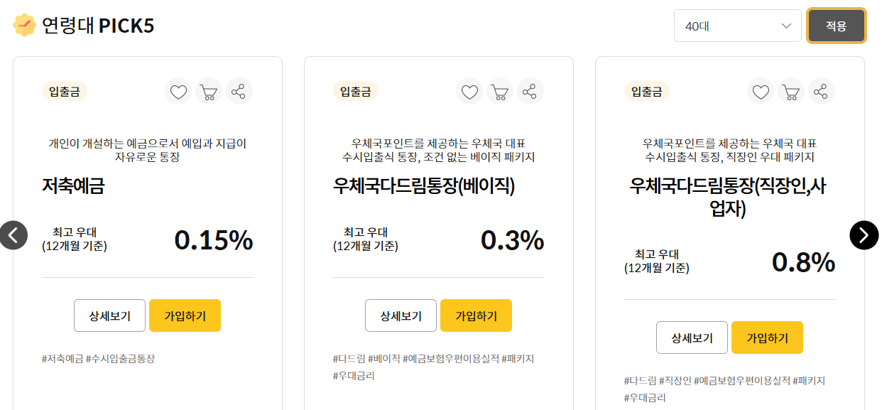이를 통해 우체국 정기예금뿐만 아니라 다른 시중은행의 예금 상품과 금리를 비교하고, 본인에게 적합한 상품을 선택할 수 있습니다.