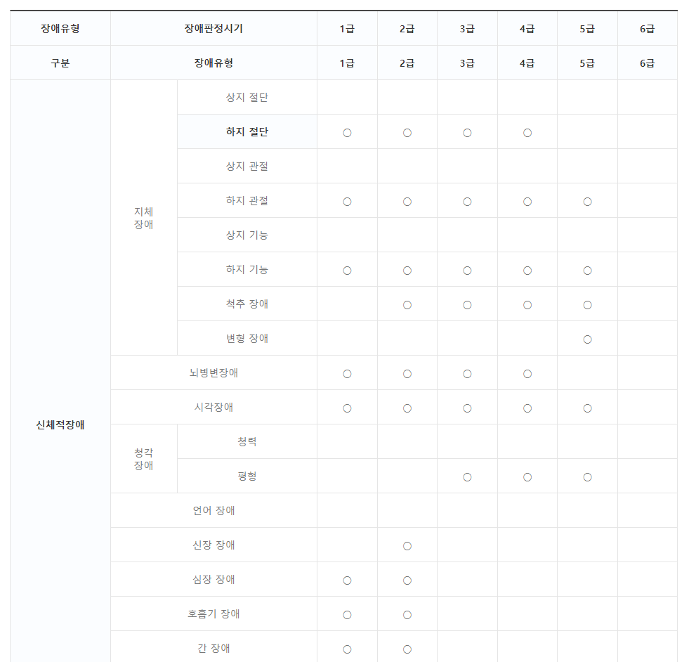 - 장애 종류 및 등급