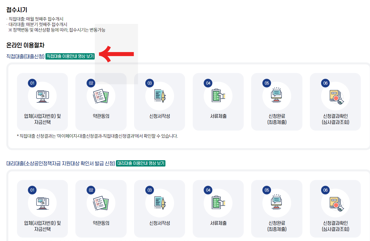 소상공인정책자금 누리집 홈페이지에서 로그인을 한 후, 직접대출신청을 누르시면 됩니다.