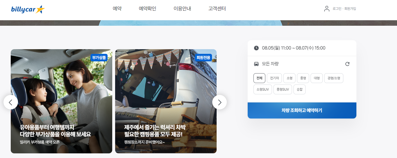 - 다양한 렌터카 상품 제공