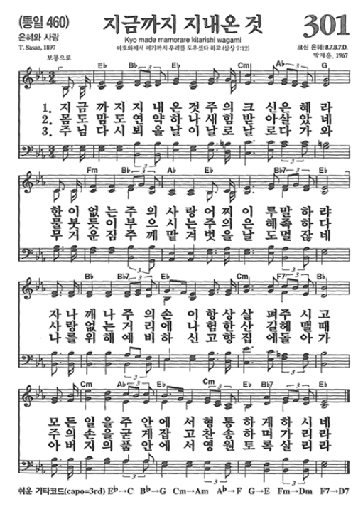 찬송가 301장 지금까지 지내온 것 악보