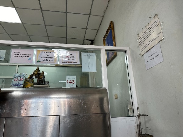 가게에 들어가면 창구가 두개가 있습니다. 위 사진에서 보이는 창구 앞으로 가서 수완나품공항(airport)라고 말하면 표를 끊어주는데요. 1인당 143바트이고 예매는 금방할 수 있었습니다.