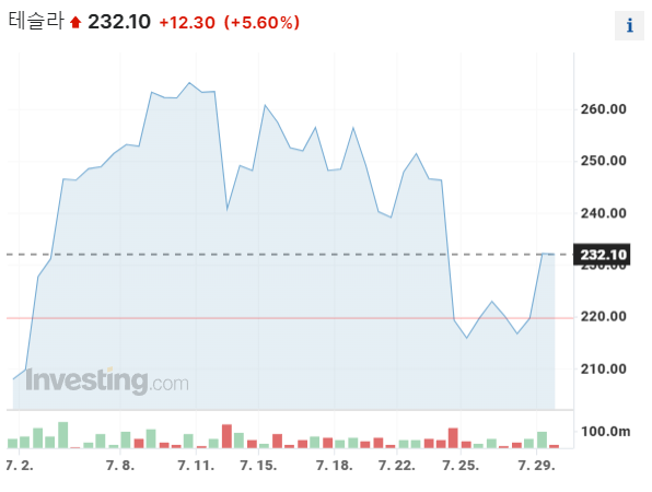 - 현재 주가 : 232.10달러, 전일대비 12.30달러 상승, 5.60%상승 (2024 7. 30 기준)