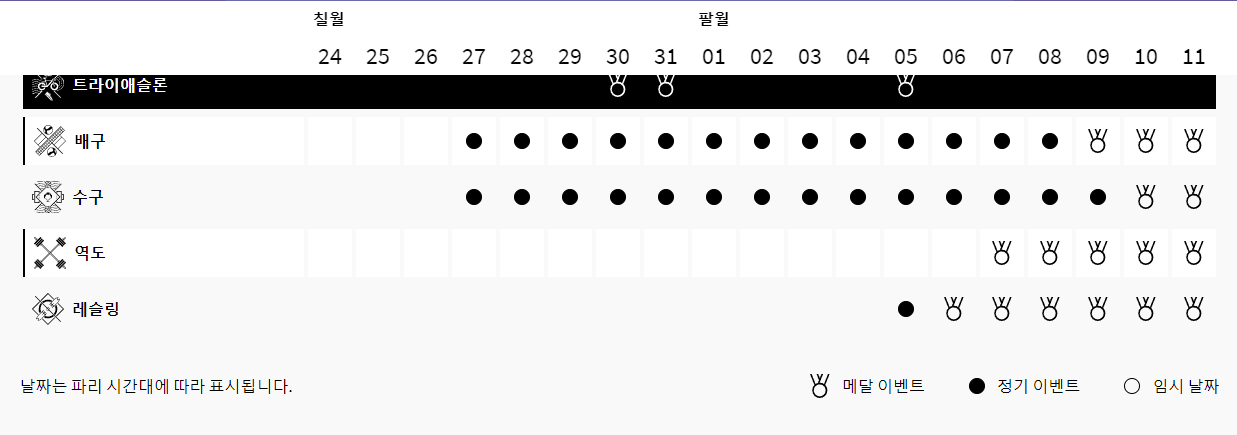 파리올림픽 종목별 대한민국 선수 경기 일정