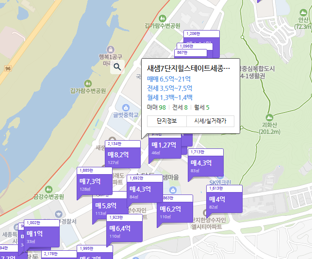 - 새샘마을 9단지 중흥S클래스리버뷰1차: 전용 110㎡의 매매가가 6억 2,000만 원으로 나타나고 있습니다.