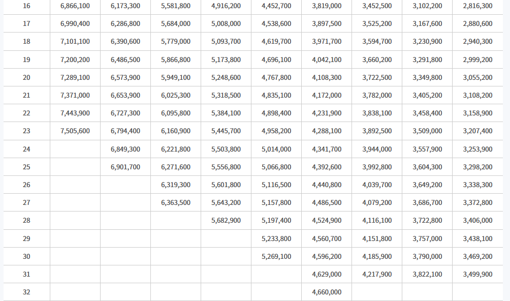 아래는 일반직공무원과 일반직에 준하는 특정직 및 별정직 공무원 등 봉급표 입니다.