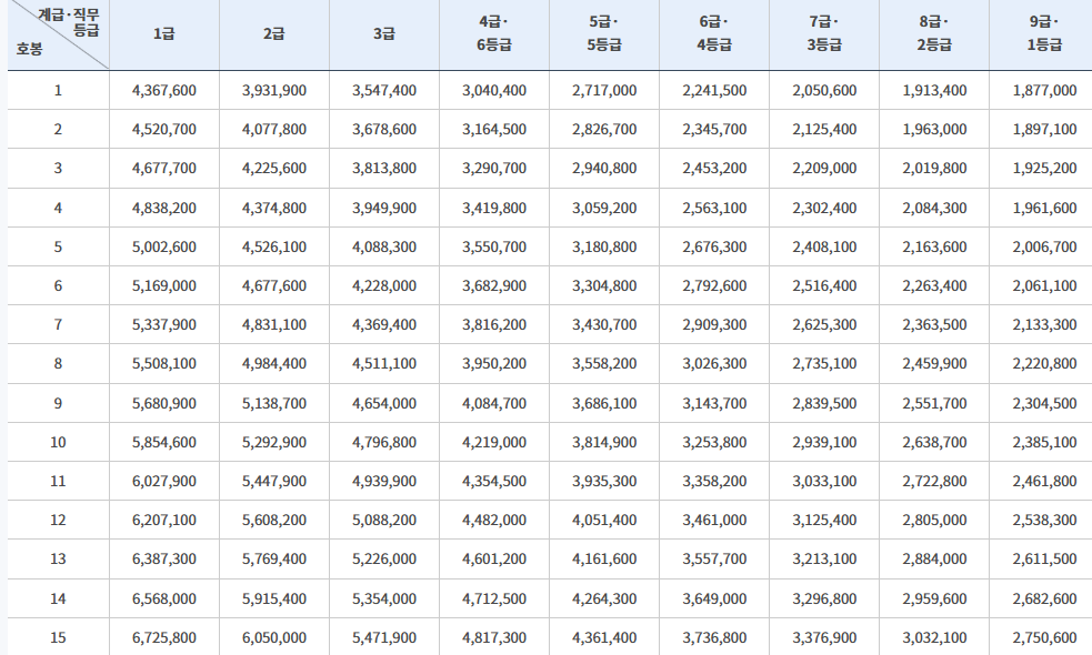 2025년 공무원 봉급 인상률 및 공무원 봉급표 총정리