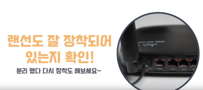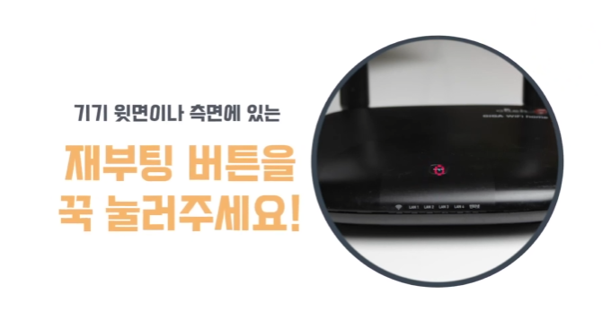 - 와이파이 공유기 설정 재부팅 : 와이파이 기기 윗면이나 측면에 있는 재부팅 버튼을 꾹 눌러주세요.